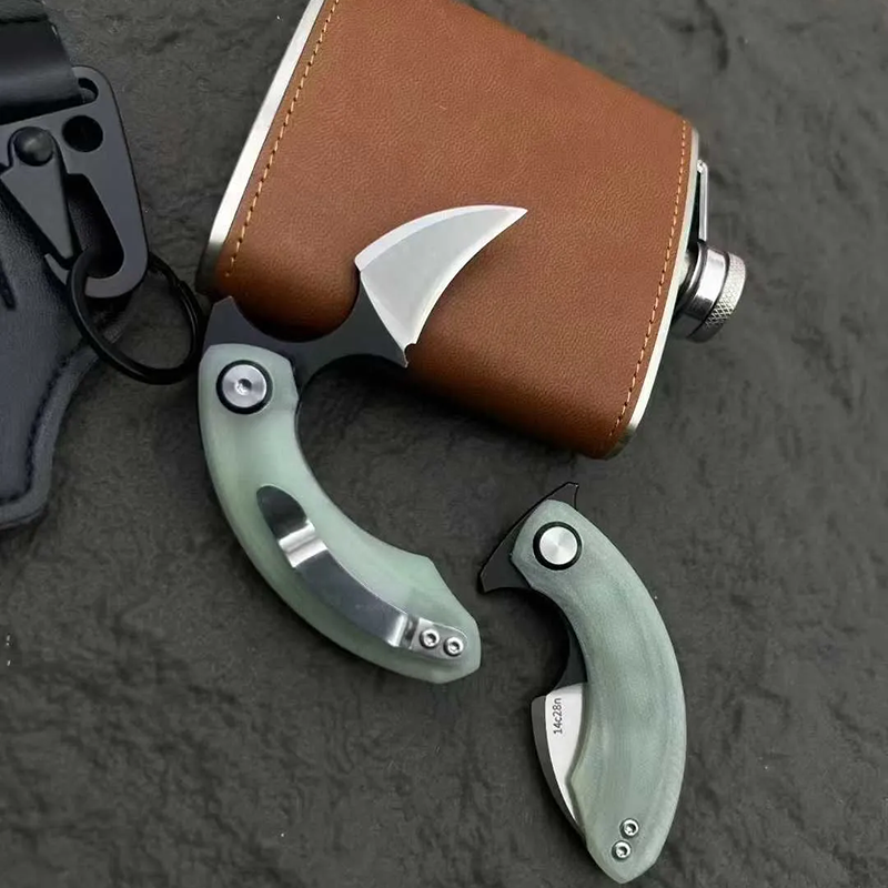 Featuring a flipper tab and a smooth ball bearing pivot system, deployment is fast, clean, and satisfying. The knife’s ergonomic design ensures the jade G10 handle fits naturally into your palm, offering comfort and control no matter how you grip the blade.