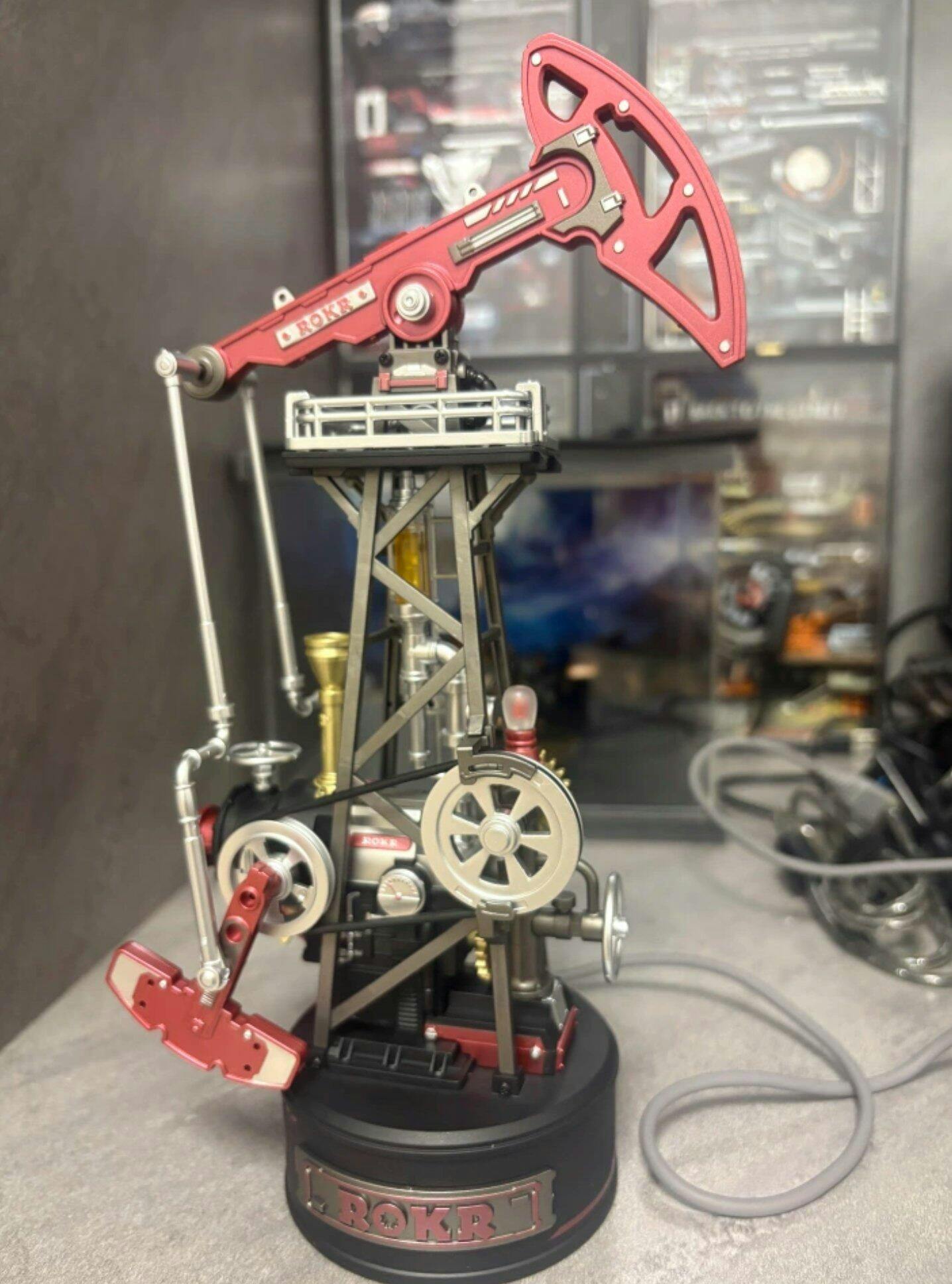 Once completed, it becomes a small industrial machine with strong steampunk energy—ideal for desktop display.