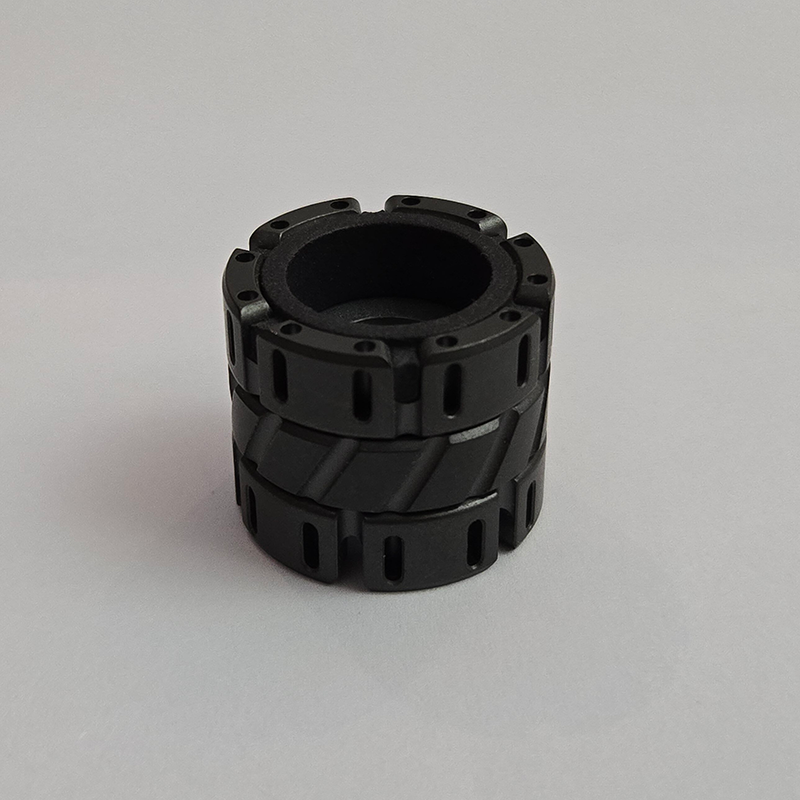 The two-piece structure enables controlled rotation, adding an extra layer of fidget motion.