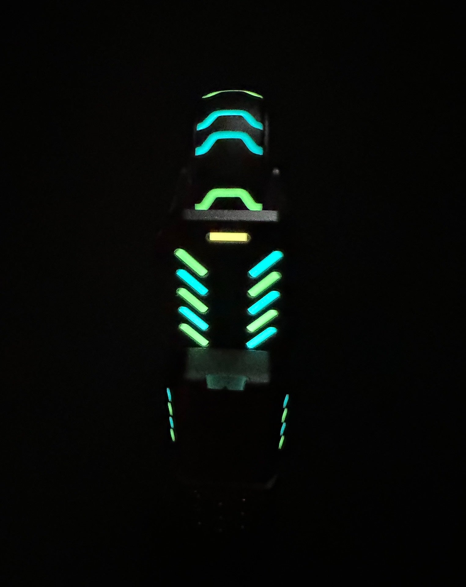 Spin the outer ring and feel the mechanical ratcheting system — built with precision springs — deliver tactile resistance and a crisp “click-click” with every rotation.